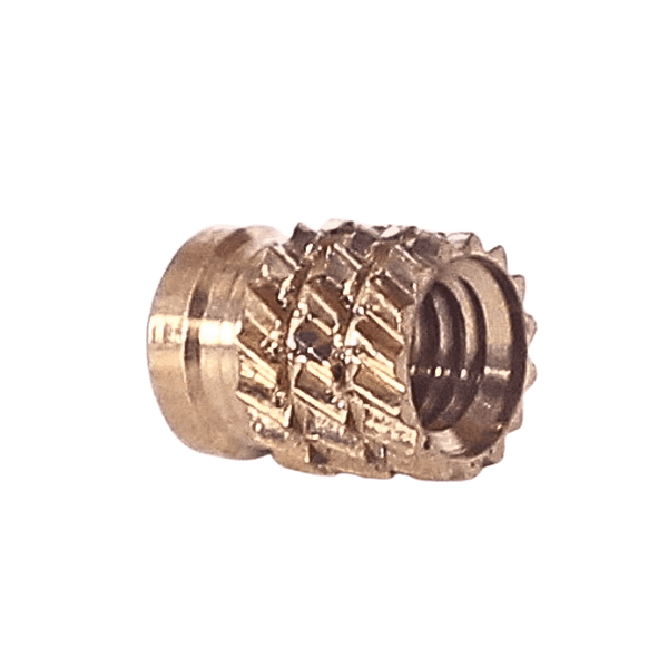 The insert must be installed using a squeeze action press, NEVER a hammer blow. The insert must be allowed to rotate in the direction of the knurl during installation. This is best achieved by the use of a punch having either a polished face or a thrust bearing. The insert must be kept axially square during installation, as any tilting will induce side loads on the boss wall. The recommended hole size must not be increased beyond the top tolerance limit since oversize holes reduce or remove the self-aligning effects, producing side loads and consequent risk of boss cracking.