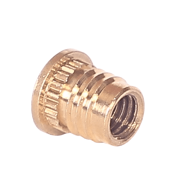 The inserts must be installed using a steady squeeze action press. A hammer blow type installation will prevent plastic flow and may damage the boss.
