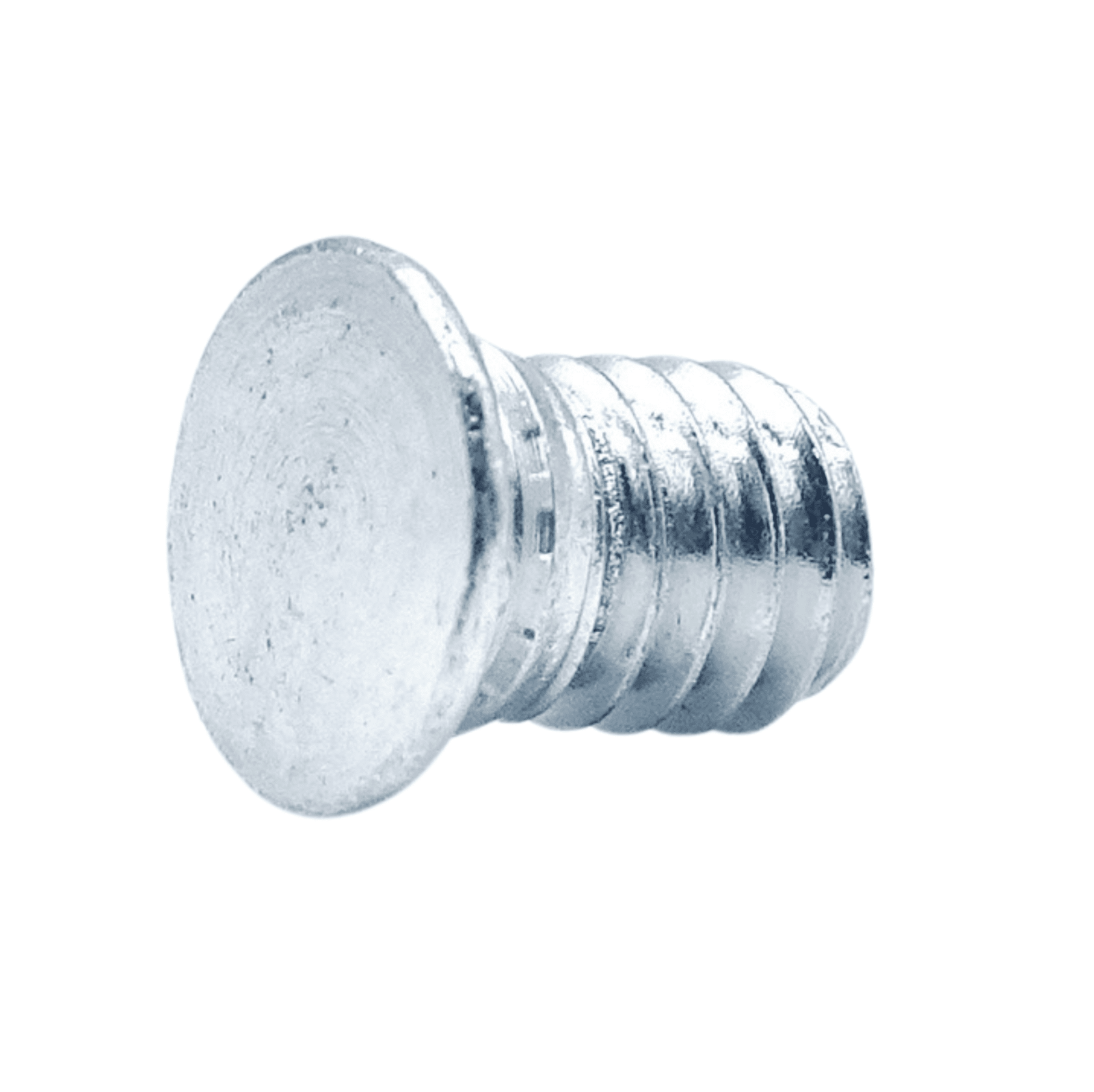 The P-FH / P-FHS SELF CLINCHING STUD is a threaded fastener which incorporates a knurled platform under the head, which when embedded in the sheet, displaces material into the clinch ring securing the fastener in place.