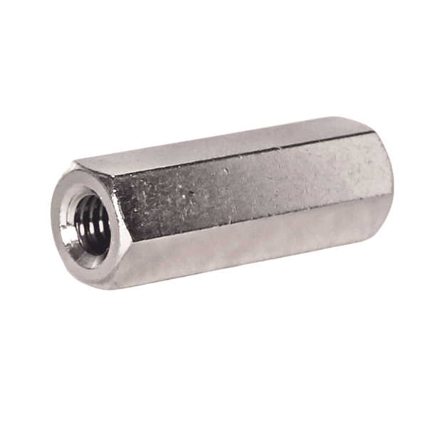 Because these are threaded spacers, they must be aligned squarely between mating parts before tightening to avoid cross-threading or side stresses. Use appropriate torque and wrenching on the hex flats to avoid damaging threads.